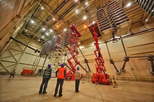 国网山东省电力检修公司胶东换流站员工开展阀厅检修作业。